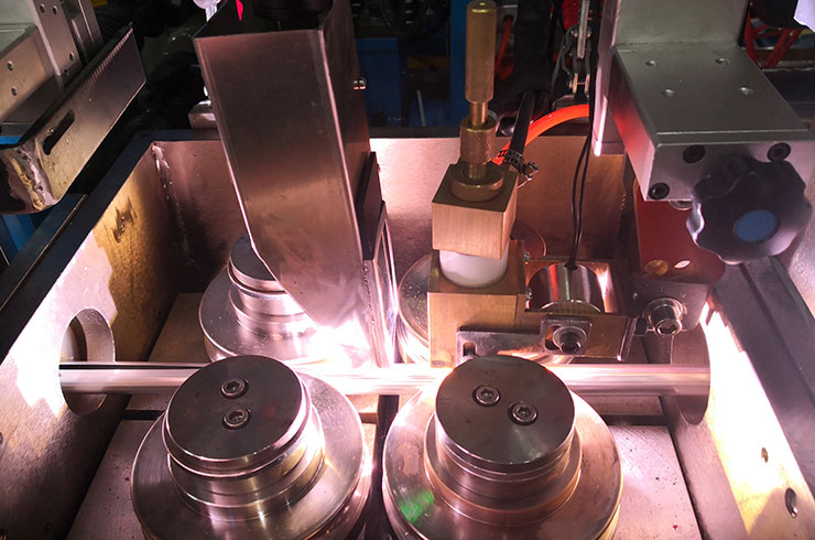 為了提高生產(chǎn)線效率,又可以獲得良好的焊縫質(zhì)量,我們公司研發(fā)的電弧焊接的穩(wěn)弧器,針對(duì)上述的問題,在電弧中間外加可以調(diào)節(jié)大小的縱向電磁場所,通過電磁力把電弧穩(wěn)定在中間或向前推,有了電磁穩(wěn)定,電弧就不會(huì)向后或左右擺動(dòng),咬邊和“駝峰”的問題就不會(huì)出現(xiàn)。所以提高了生產(chǎn)效率又保證了質(zhì)量,如圖2所示。提高速度20-30%在實(shí)際生產(chǎn)中使用得到了驗(yàn)證。為了適應(yīng)不同的焊接電流和生產(chǎn)速度,可以調(diào)節(jié)電磁力的大小,適應(yīng)不同的焊接電流和速度。