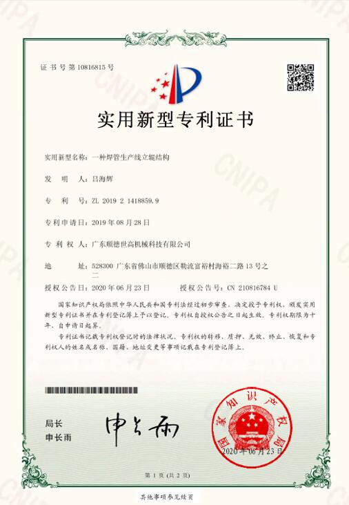 ? 激光焊接生產(chǎn)線、精密焊管生產(chǎn)線、精軋管光亮固溶生產(chǎn)線、旋轉(zhuǎn)式固溶生產(chǎn)線獲得了多項國家專利